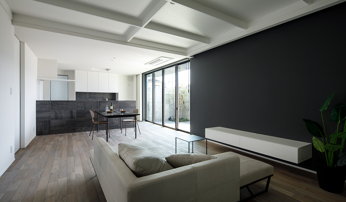 視線がどこへ抜けるかによって、リビングの居心地は大きく変わります。キッチンからリビングやダイニングへ視線が届くようにしたり、リビングからスタディスペースや中庭へつながるよう設計すると、家族が別の場所で過ごしていても気配を感じられ、安心感につながります。