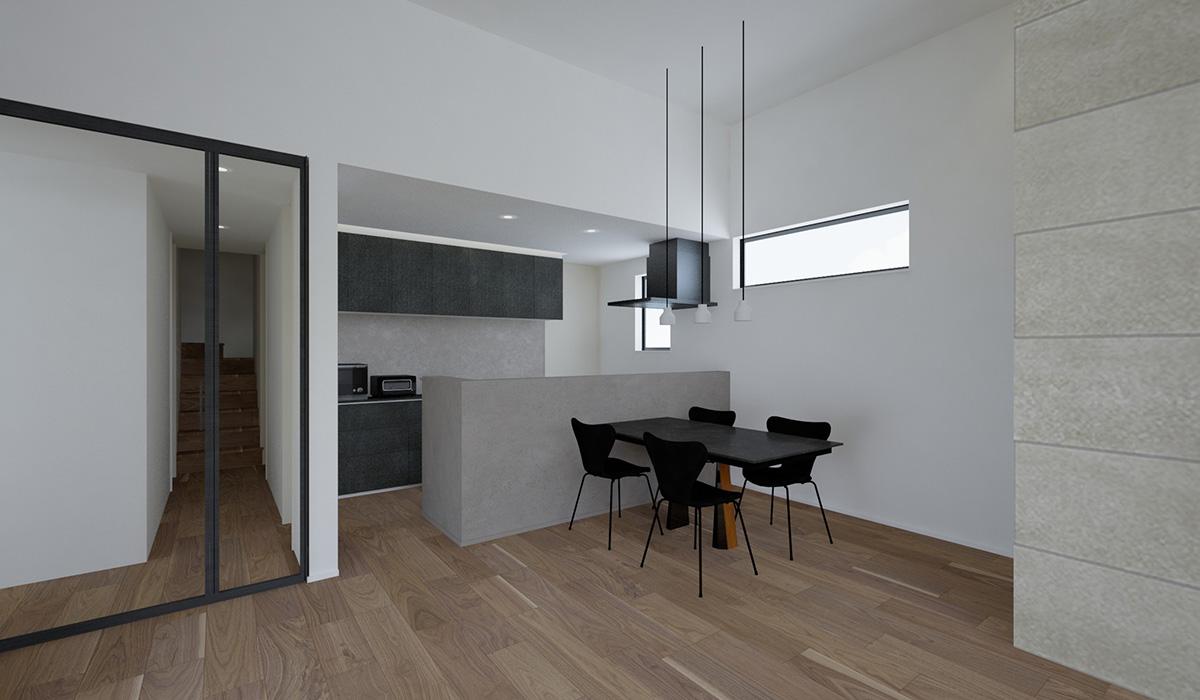 キッチンからは水廻りやウォークインクローゼットへとスムーズにアクセスできる家事動線が整い、日々の暮らしを快適に支えます。
