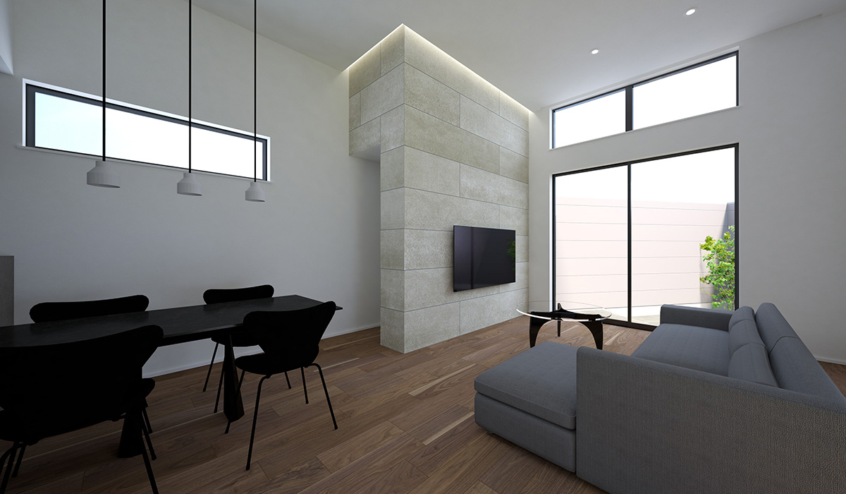 採光と視線を計算し、心地よさとプライバシーを両立したリビングです。