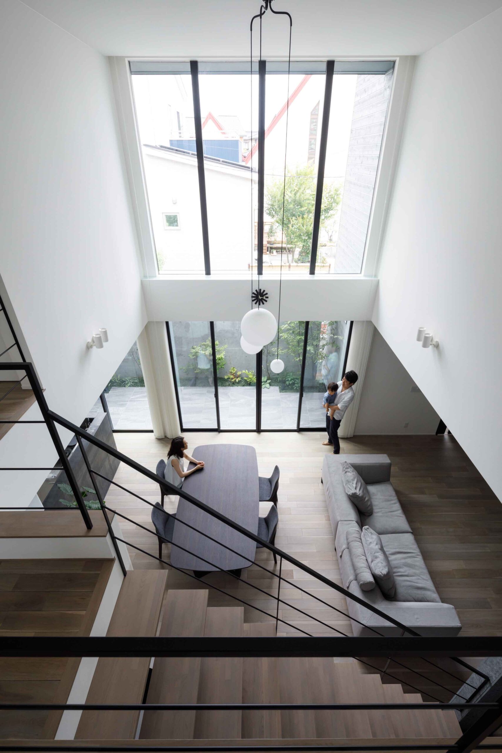 道路や隣家からの視線が届きやすい条件でしたが、RCの壁で目隠しをしながら庇を2階の高さまで上げていただいたことで、開放的な空間になりました。リビングやキッチンから庭を感じながら、昼間でもカーテンを開けたまま過ごしたいという想いも形になり、昼も夜も外を気にせず暮らせています。