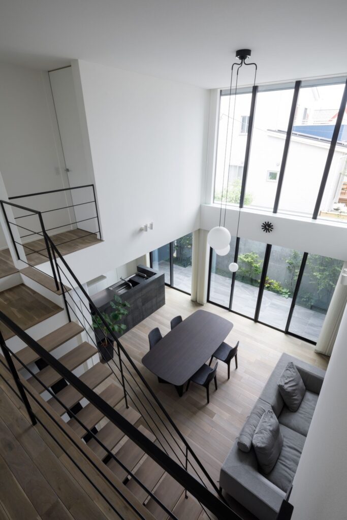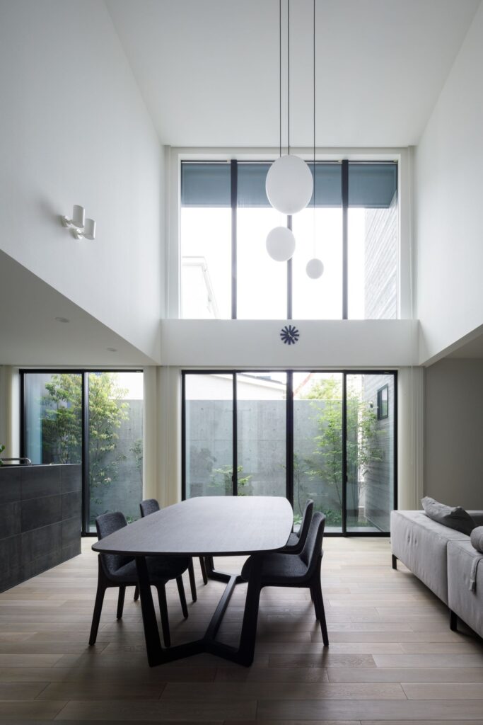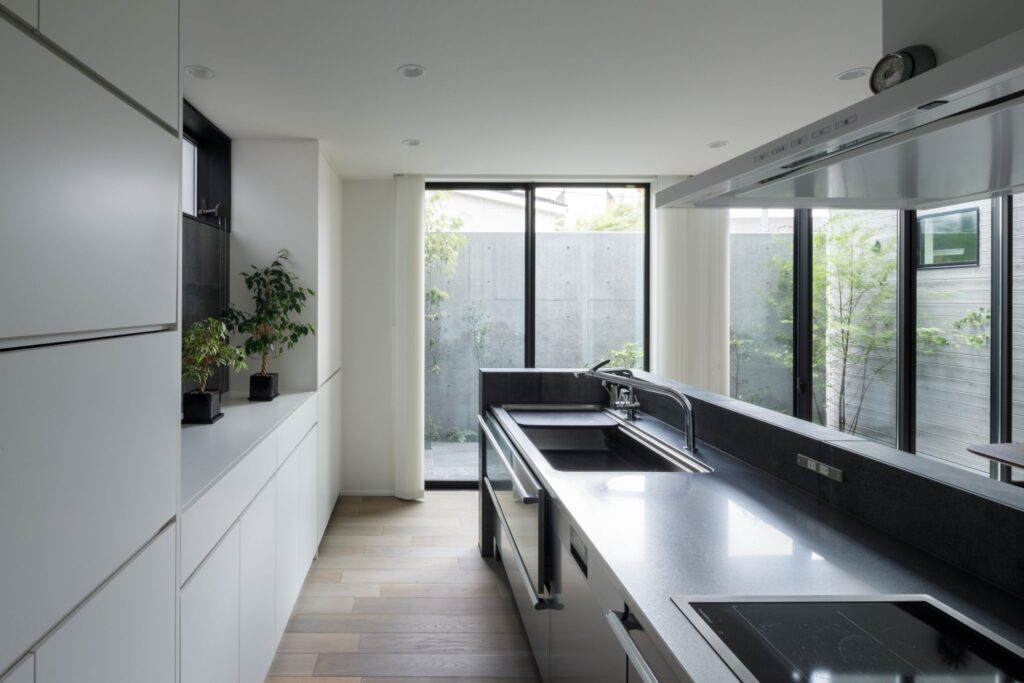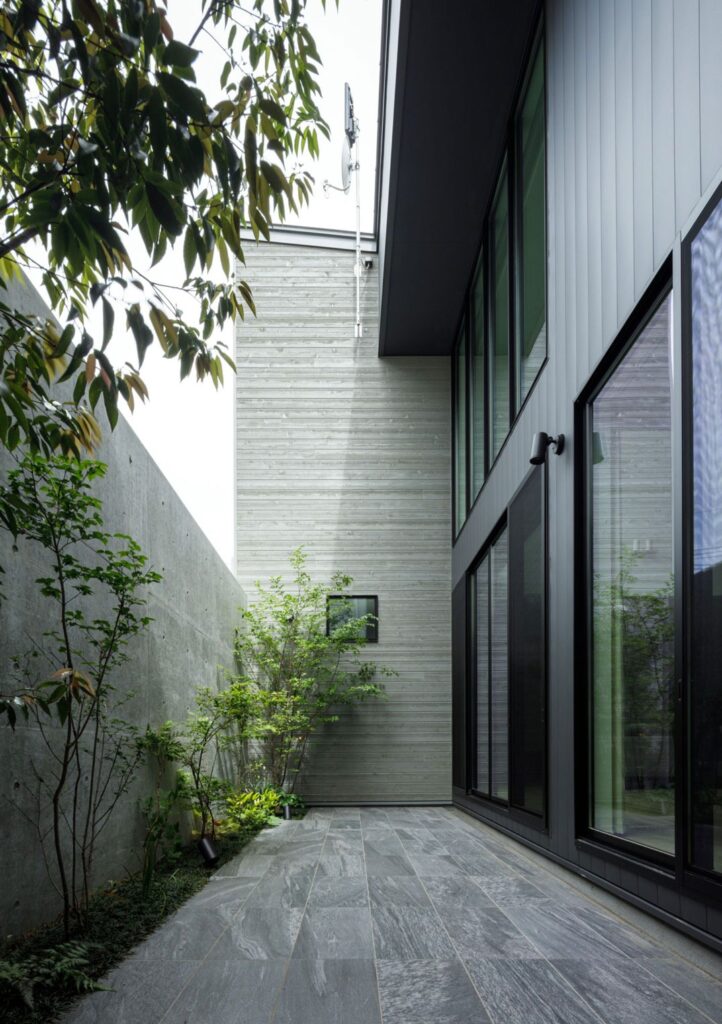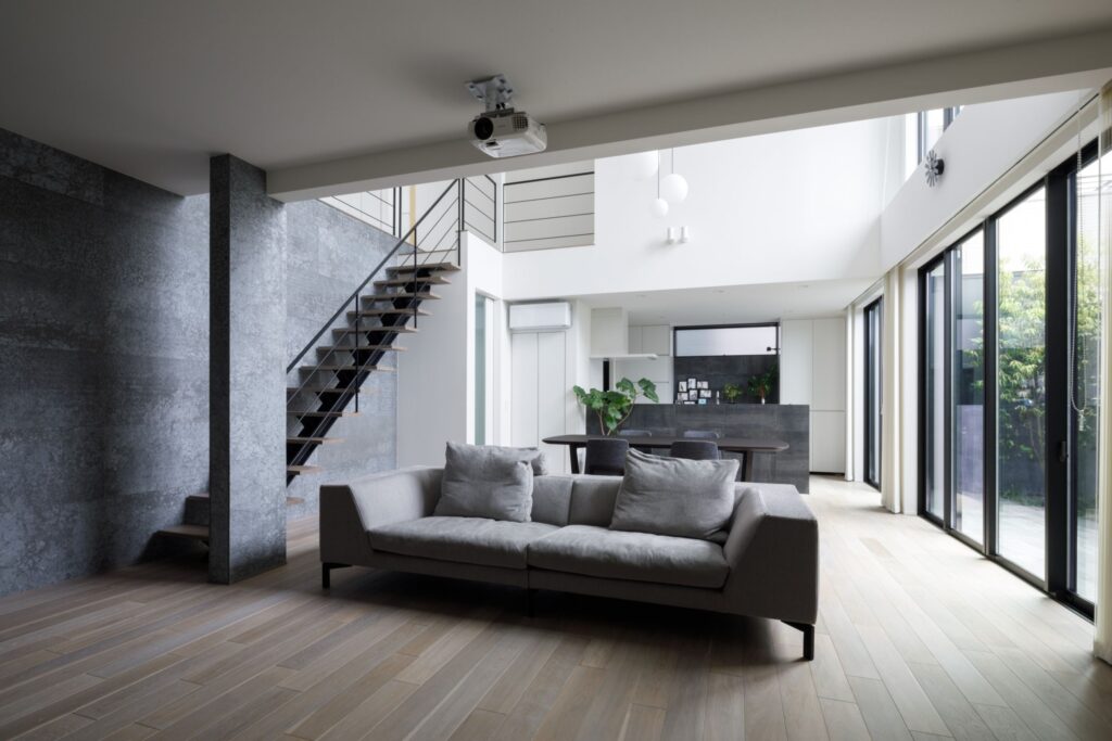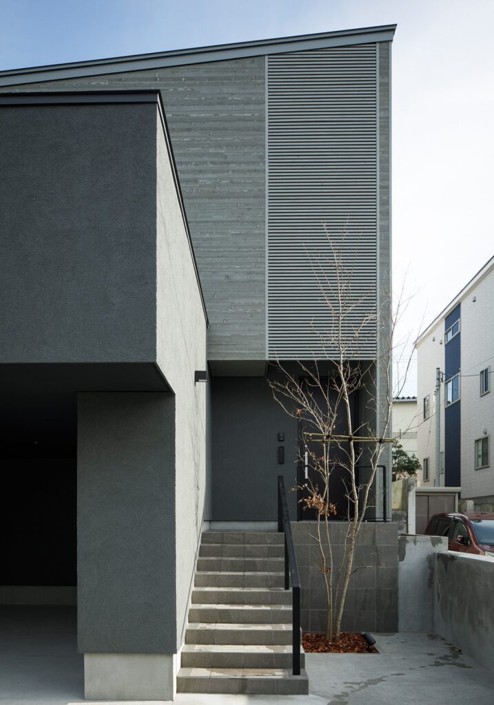 無垢の木、塗り壁、石、セメント、タイル。さまざまな素材が、ニュアンスのあるグレーのグラデーションを描き出した住宅です。家事導線も理想的な設計となっています。