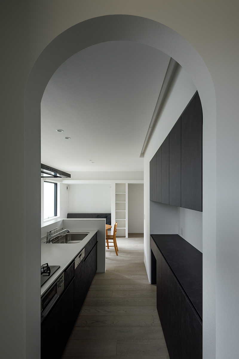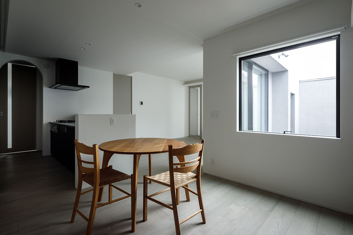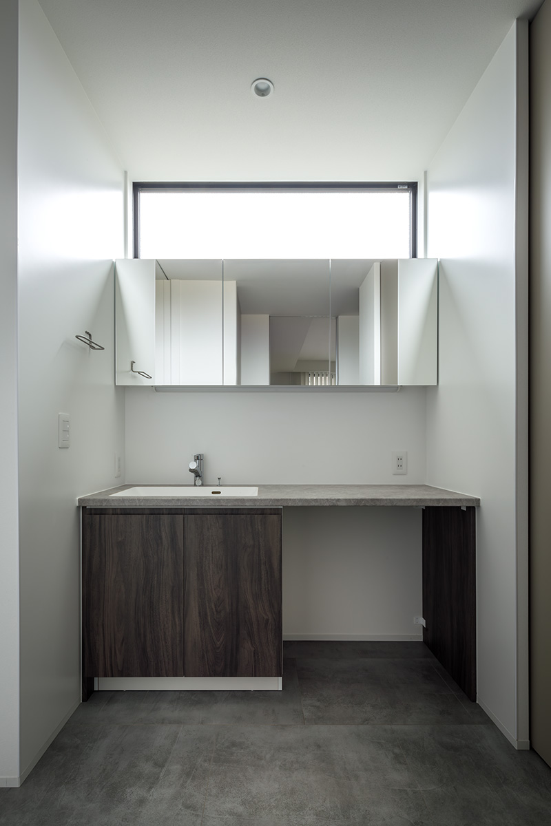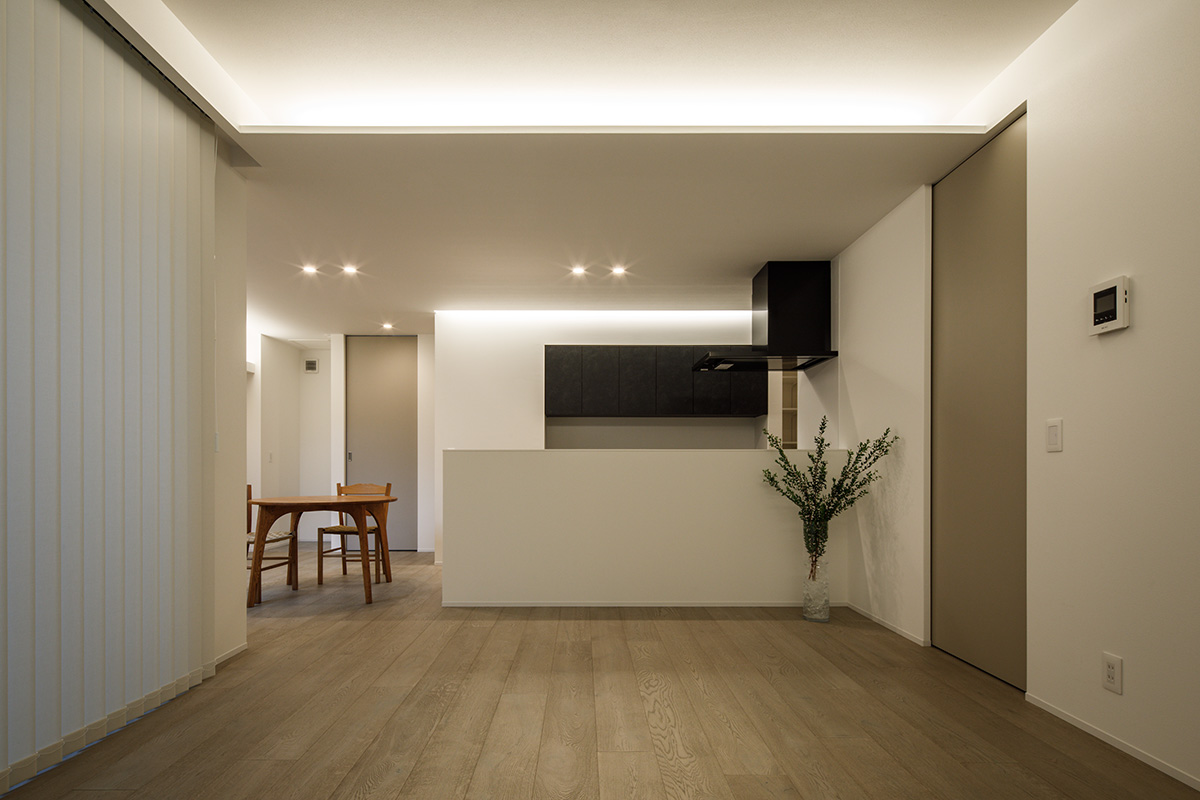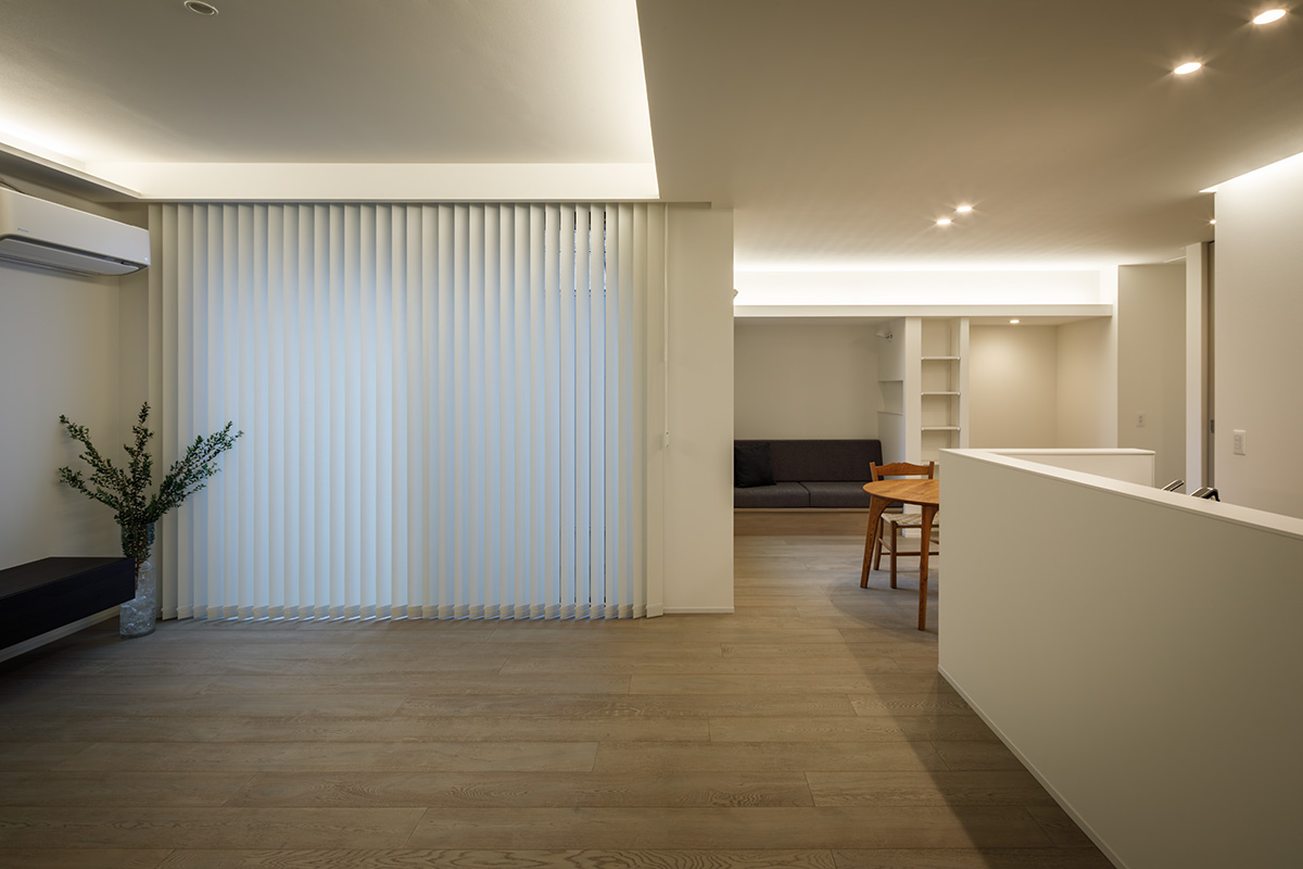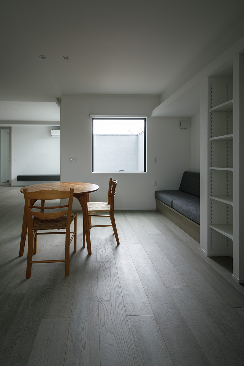 離れた和室や造り付けのヌックなど、家族の居場所を所々に設け、気配を感じながらも落ち着いた間取りに。