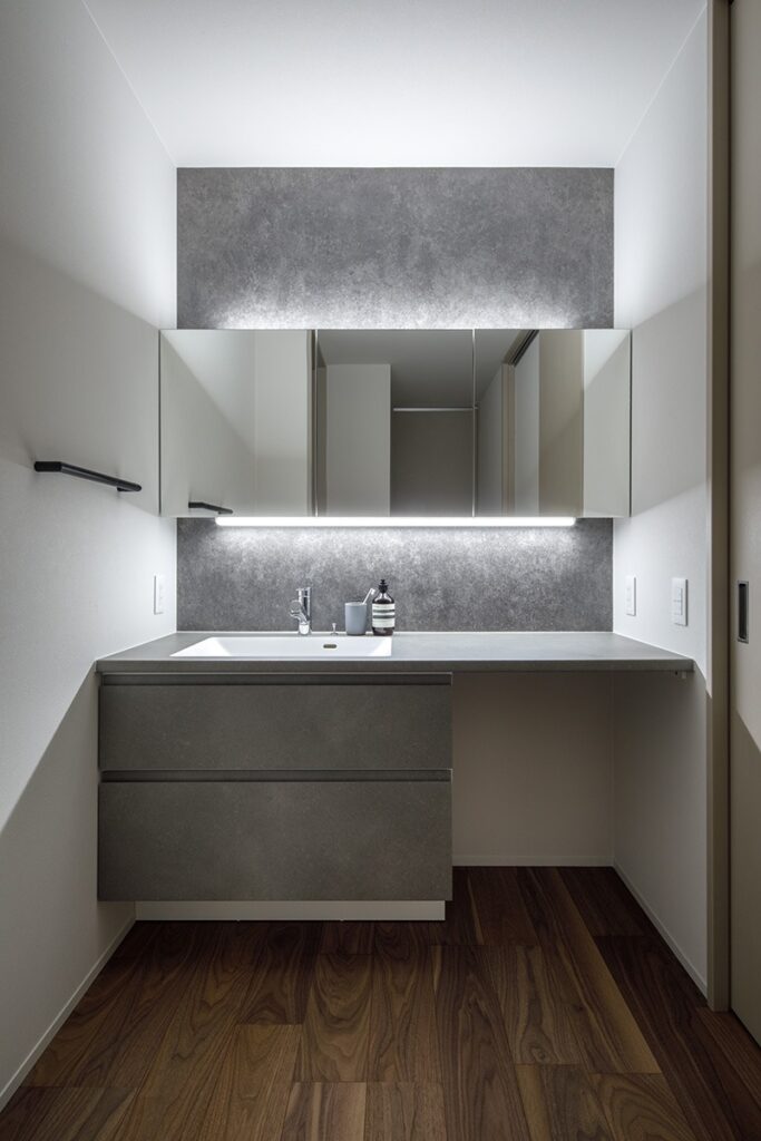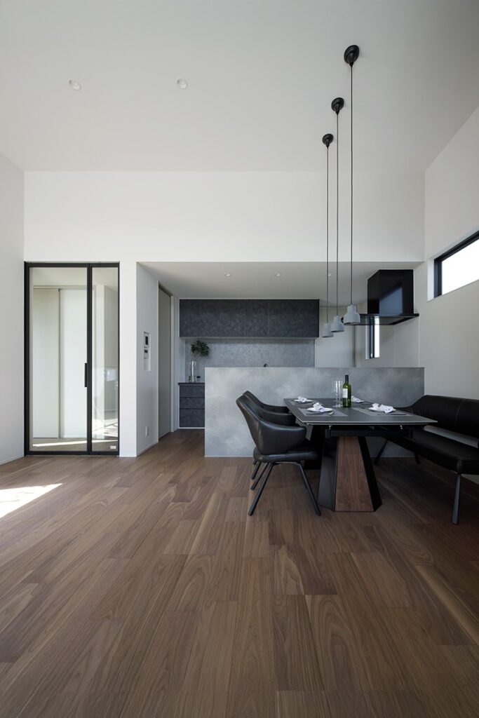 キッチンからは水廻りやウォークインクローゼットへとスムーズにアクセスできる家事動線が整い、日々の暮らしを快適に支えます。