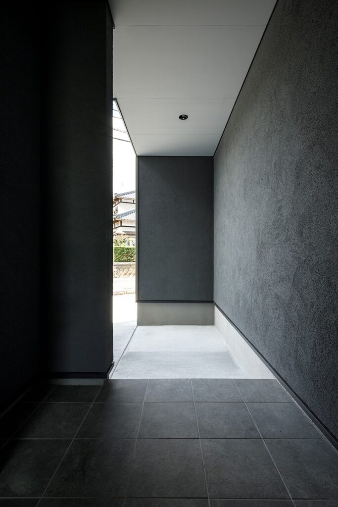 ゆるやかにカーブした道を進むと現れる静謐な佇まいの住まい。